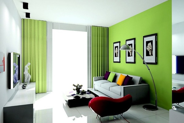 Untuk warna ini disarankan agar ruangan memiliki luas yang cukup sehingga bisa menambah nilai kecerahan dan penerangan yang cukup. Selain itu warna hijau bisa menciptakan suasana natural layaknya pemandangan alam