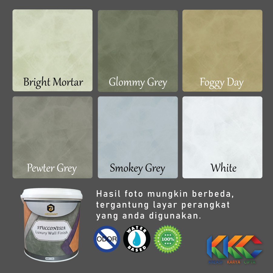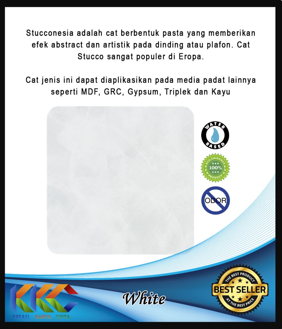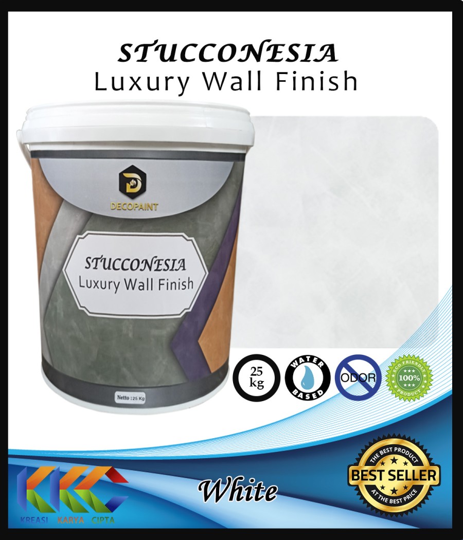 Stucconesia adalah cat pasta spesial yang difungsikan untuk menciptakan kesan cat dekorasi yang artistik dan elegan. Cat stucco ini mampu menghadirkan nuansa ruangan tampak lebih hidup dan menarik. Pola aplikasi cat stucco ini sangat khas sehingga menyulap dinding biasa menjadi lebih indah dan berkelas serta memiliki nilai seni yang tinggi.Bagi Anda yang menyukai warna dan motif dengan kesegaran baru di hunian maupun bangunan Anda, cat Stucconesia ini sangat kami rekomendasikan. Sentuhan cat stucco ini juga memberikan kesan pada ruangan Anda tampil lebih exotic dan menambah suasana hangat dan juga modern.